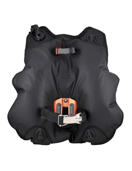 - Wrapture Harness System – Using patented swivel shoulder buckles and a proprietary, ultra-thin back plate, the Wrapture provides unsurpassed comfort and stability. Wrapture prevents the BC from “riding-up” on the surface. Out of the water, the Wrapture keeps the cylinder close to your