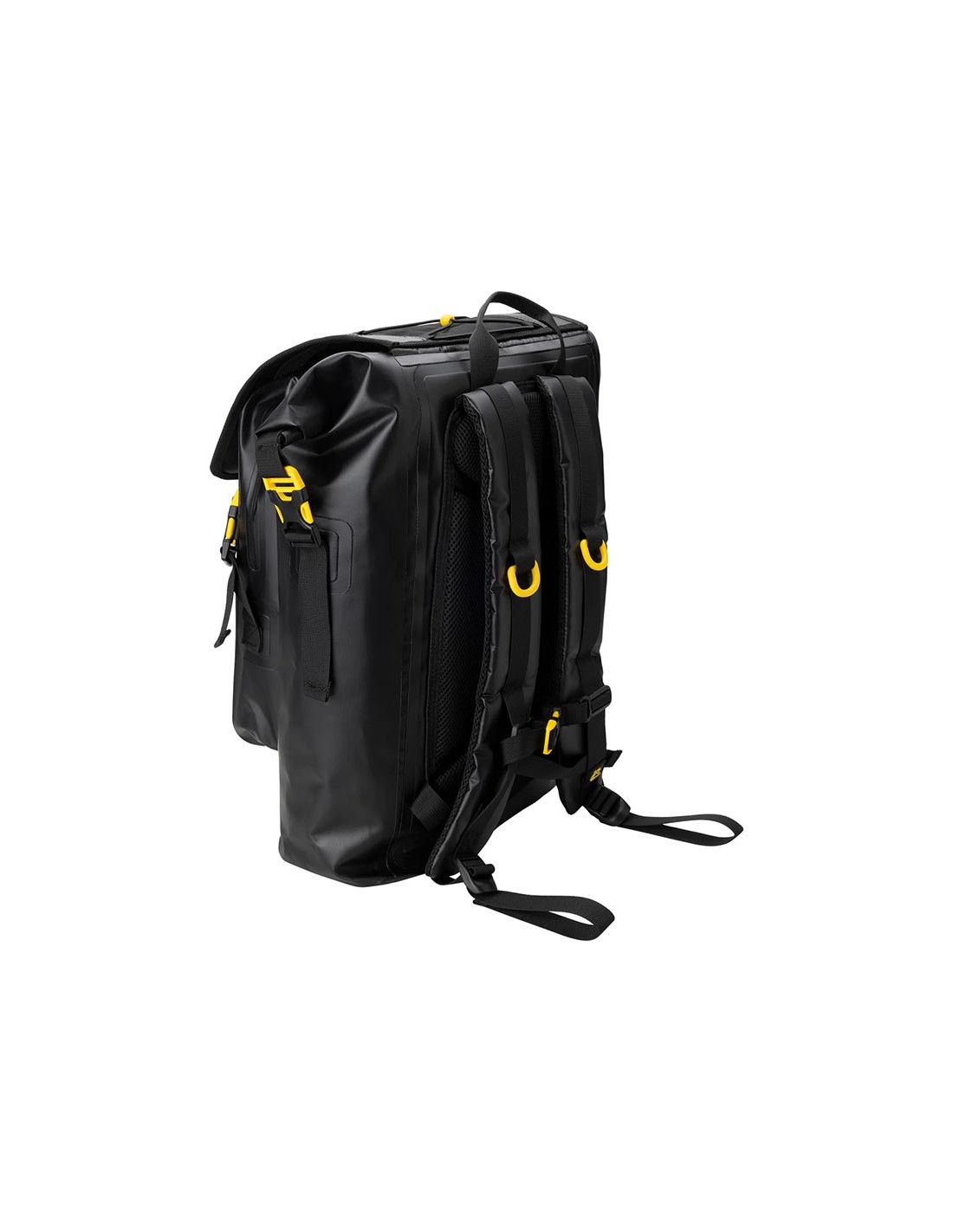 Venom is a rolltop backpack consisting of a waterproof PVC tarpaulin compartment for carrying wetsuits and wet gear. Welded onto the front is a 5-litre compartment, consisting of two pockets, a larger and a smaller one for wallets and small things. The rucksack also has a mesh pocket for bottles, practical D-rings on the bottom for hanging gear and drying the rucksack upside down, and an elastic cord on the top flap cover for carrying extended items.