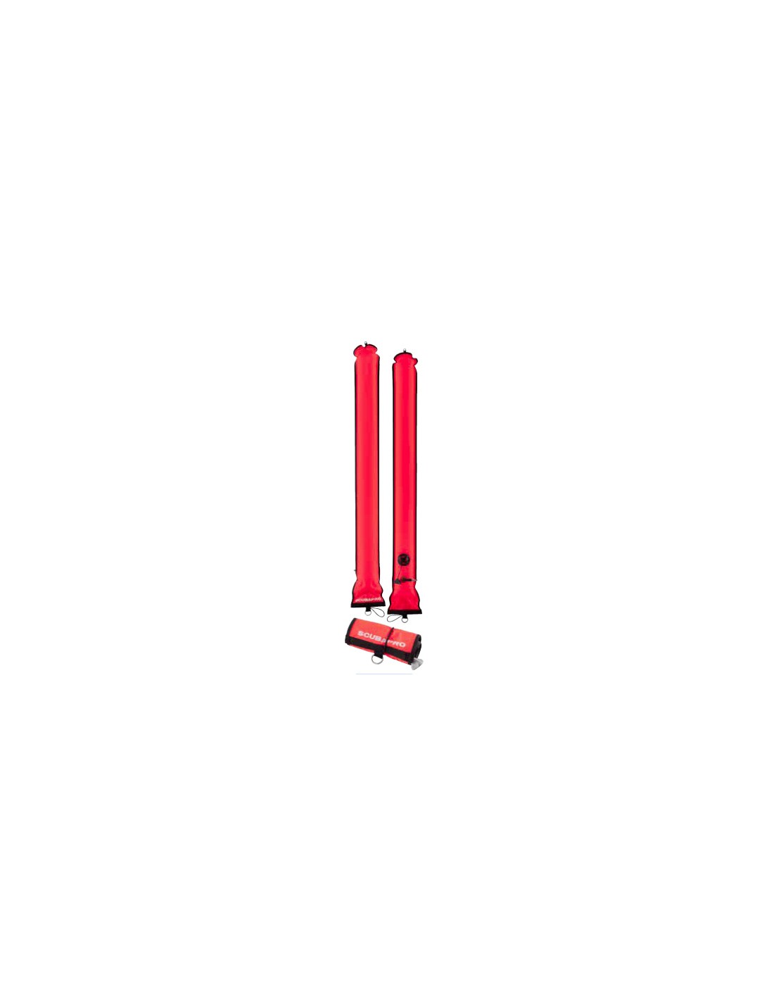 This professional grade SMB (surface marker buoy) features a double inflation system with a one way integrated valve, making it easy to operate one-handed. The buoy is constructed of durable 210D nylon with HF welded seams. There’s a 40mm stainless D-ring and bungee loop on the lower end, with a plastic D-ring on top for a flashlight.