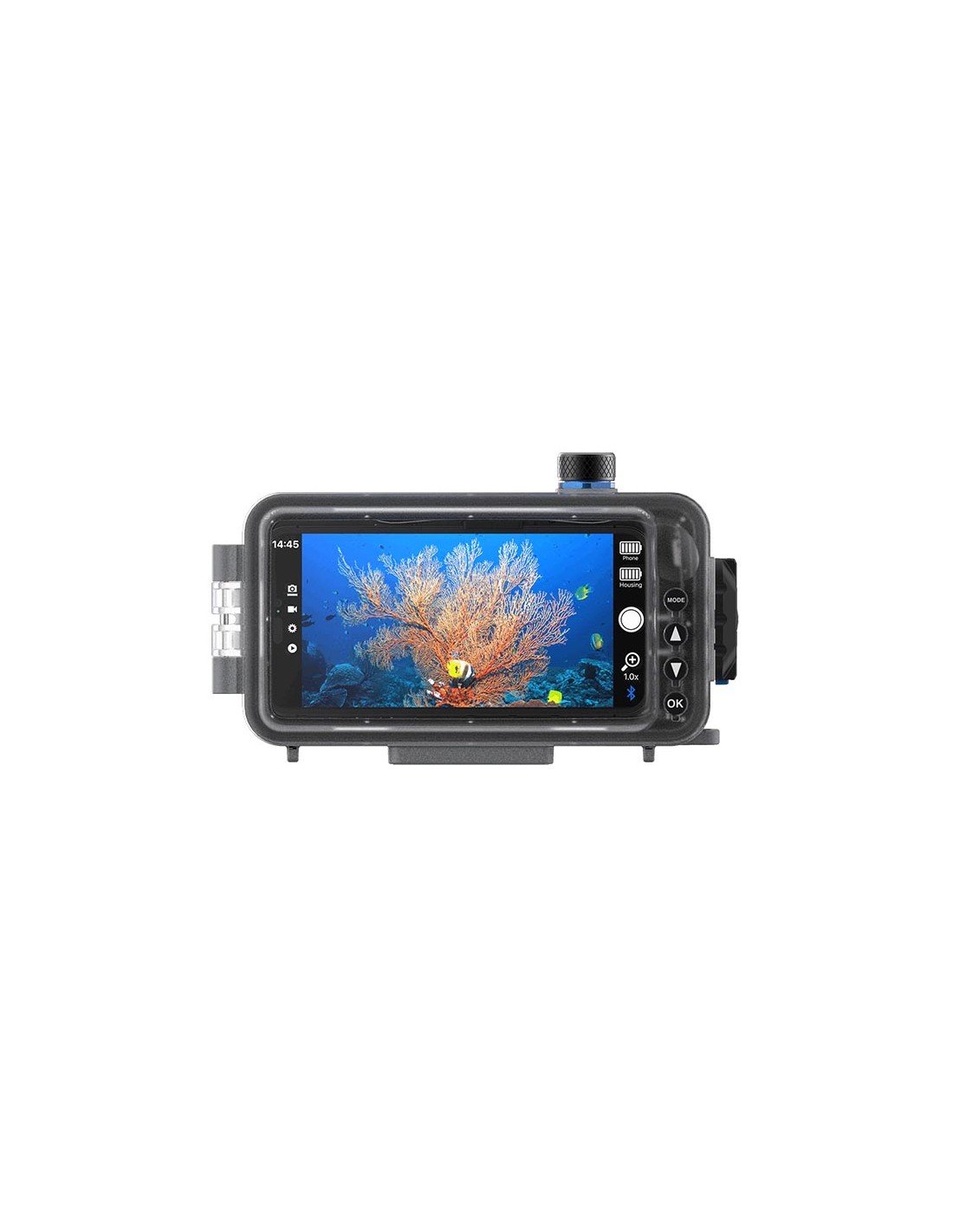 The SportDiver S is designed for absolute reliability and ease of use and allows divers and snorkelers to take stunning photos and videos with their smartphones. Made of high-quality polycarbonate, stainless steel, hard anodised aluminium and optical-grade glass, the housing weighs only 641 grams on land and is nearly neutral in buoyancy underwater (depending on the smartphone used).