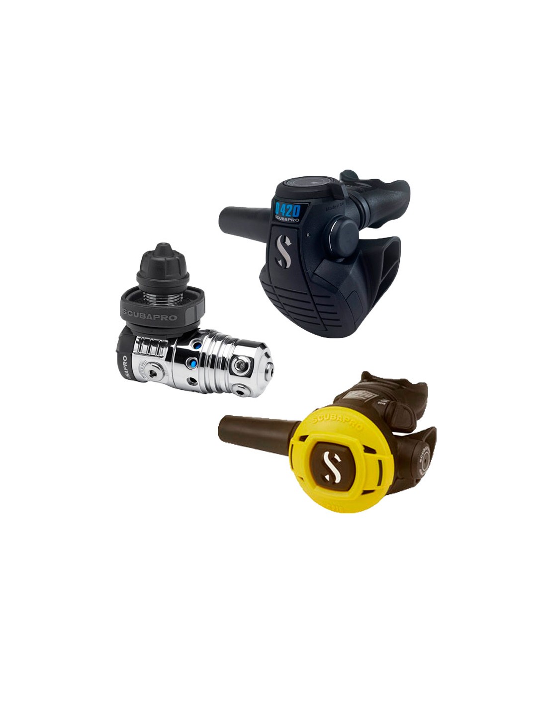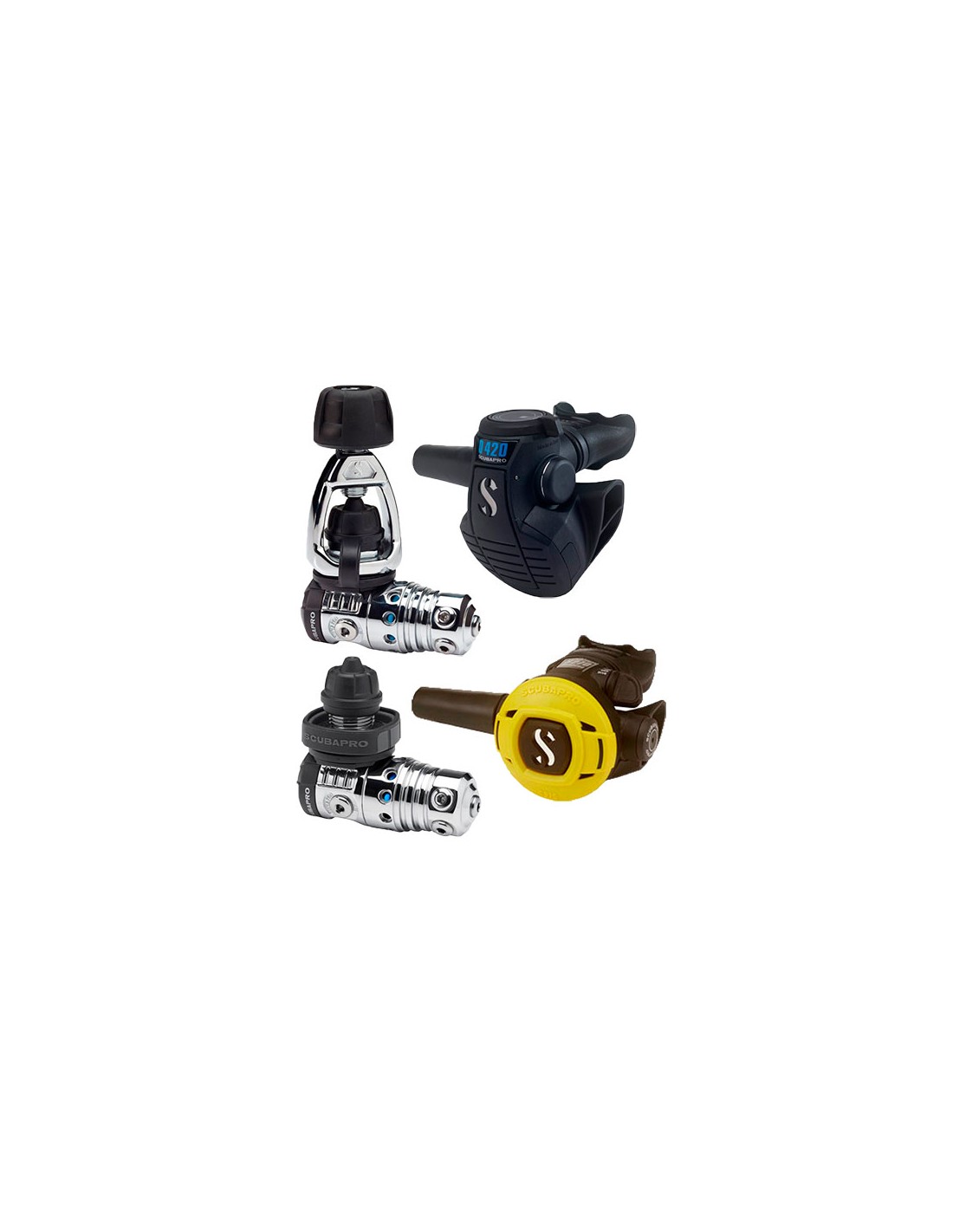 - Air balanced flow-through piston first stage design delivers consistent and effortless airflow, regardless of depth, tank pressure, or breathing rate.