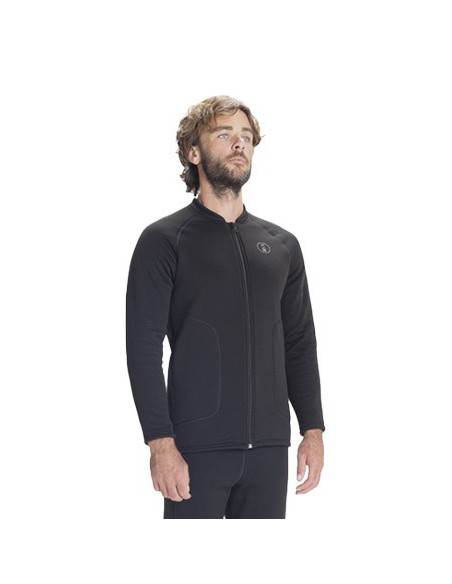 The Arctic top is designed with a long body portion to ensure adequate overlap between the top and trousers. With a low, full front zip for ease when donning and to improve overall fit. Thumb loops prevent the sleeves from riding up during donning. Remember to remove them and tuck them back underneath the wrist seals. With hand warmer pockets for between dives.