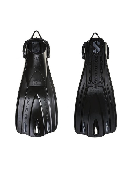 SCUBAPRO’s GO Sport fin features a “boot-fit” design, enabling divers who wear boots when giant-striding into cold water or negotiating rocky shore entries to benefit from the proven kicking performance of the original Tester’s Choice-awarded “bare-fit” GO fin. Lightweight yet virtually indestructible, this fin is a fast and nimble performer in the water. The blade has been slightly revised from the original; it now provides mounting points to attach skegs that minimize sideslip and maximize stability. The self-adjusting bungee heel strap allows for a versatile fit. The strap also makes it easy to don and doff. The GO Sport is designed to fit in IATA carry-on compliant luggage, making it a great fin for both travel and local diving.