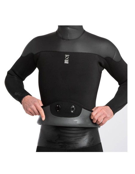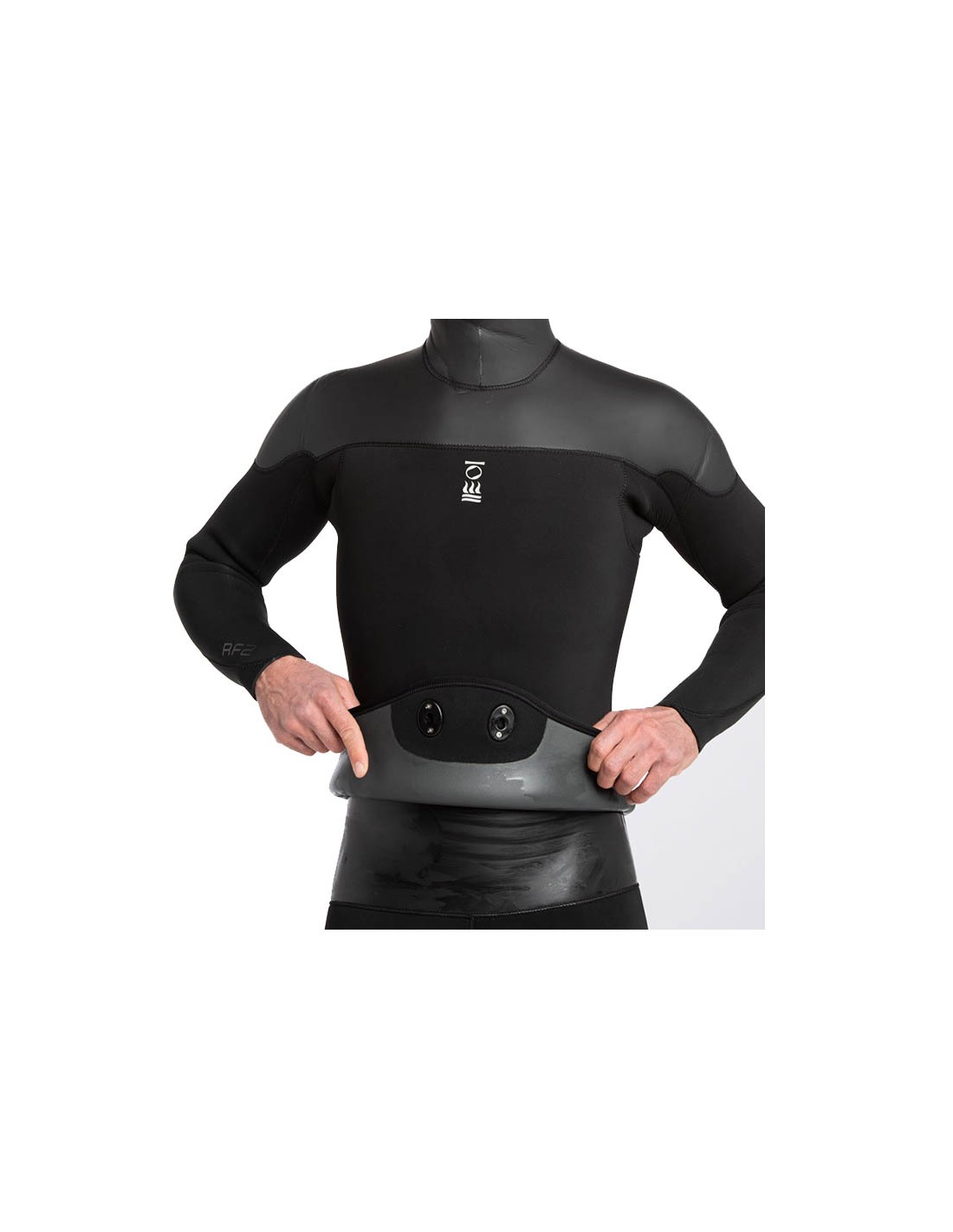 The RF2 Jacket has a tradition appearance, disguising the most advanced and developed features, designed for cold water freediving. The hood features a smothskin faceseal that eliminates water ingress, whilst the rest of the inner of the suit is 'open cell' Metalite neoprene, designed to maximise thermal protection and stretch.