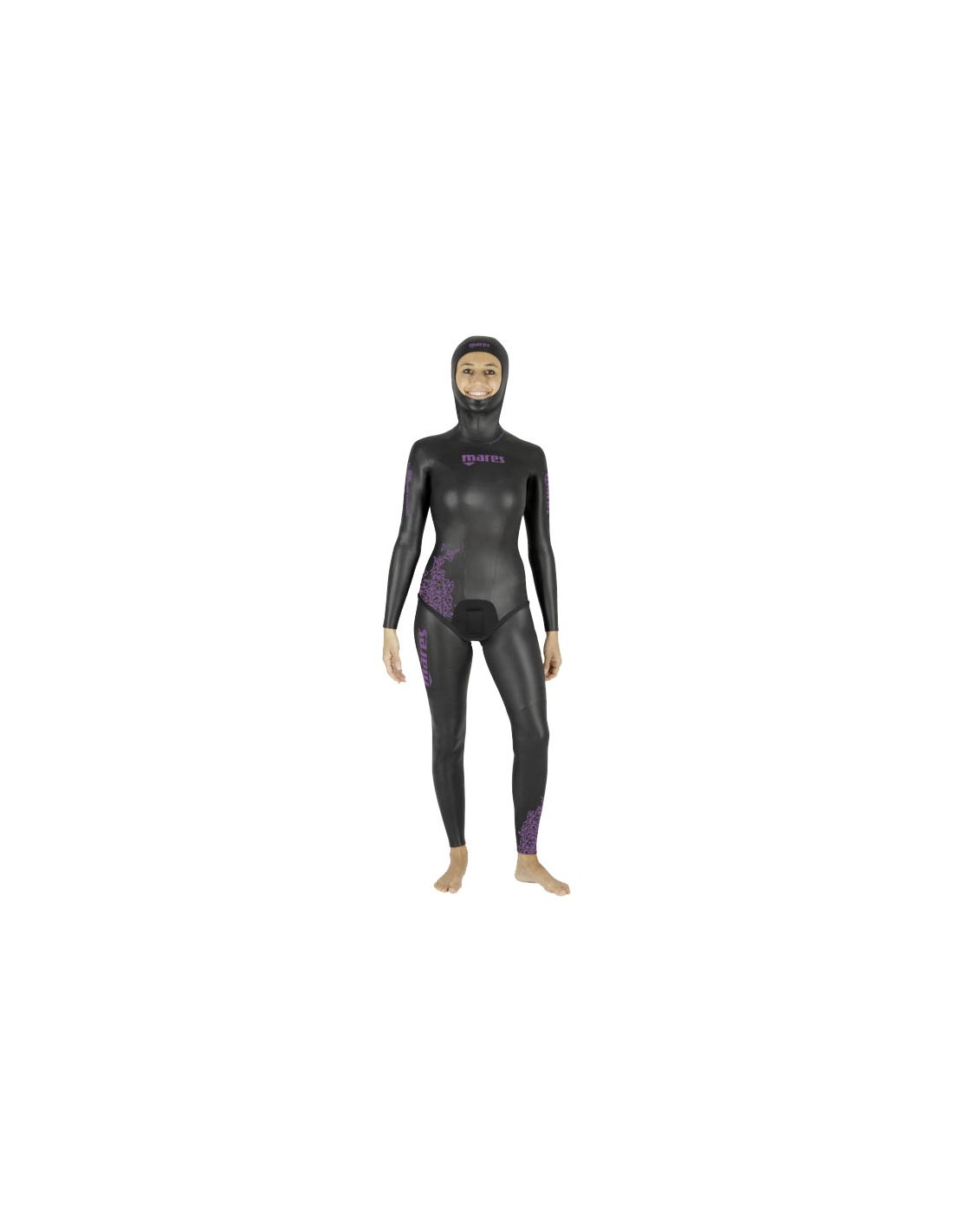 The pants of the women's Mares Prism Skin freediving wetsuit are in ultra-elastic smooth neoprene . An extreme flexibility which allows for easy breathing and maximum comfort. Its unique inner lining also makes it very easy to wear. The 3mm smooth neoprene material offers excellent elasticity and outstanding thermal properties , increasing warmth and the ability to move freely in the water.