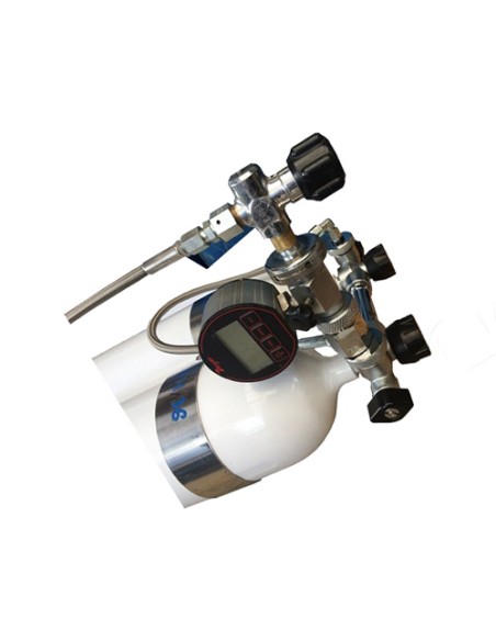 When filling twin sets and SCR devices with TMX or NITROX mixtures, different concentrations of the mixture occur in individual bottles. This can be avoided by filling each bottle separately or by using the PTH 300 hose. After closing the connecting bridge, fill both bottles at the same time. As a result, both bottles are guaranteed to have the same mixture!