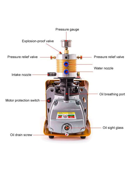With a filling capacity of 200Bar (3000 PSI) and a small size and weight (17kg), it is ideal to carry it and store anywhere.