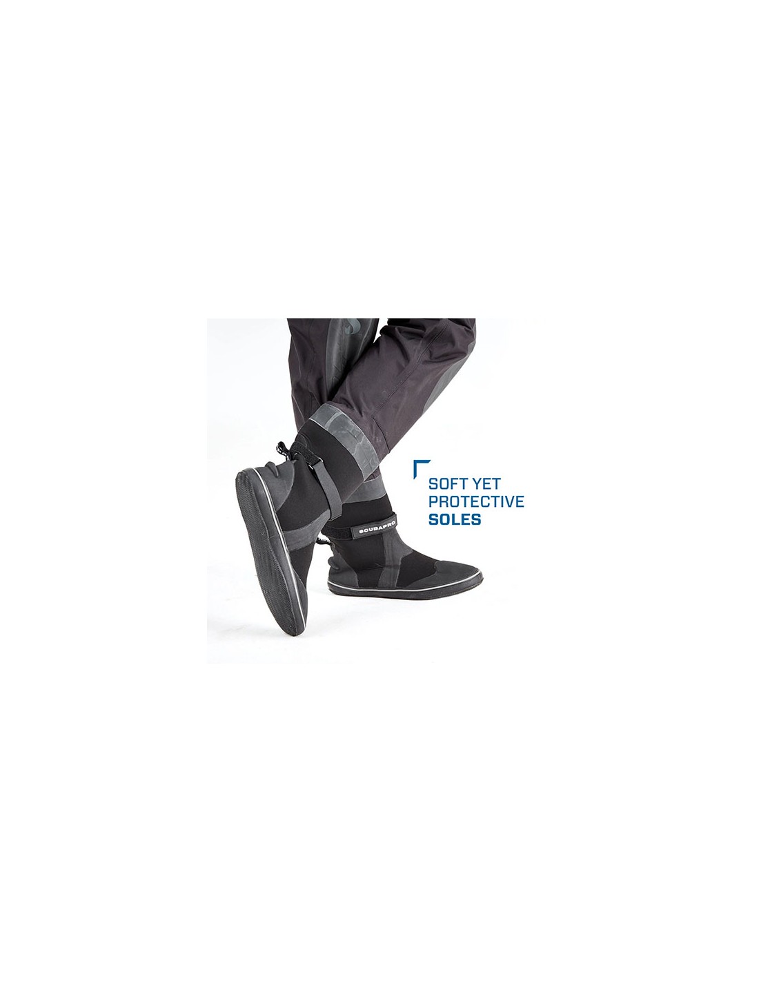- Attached semi-rigid dive boots feature soft soles that improve their anti-slip capabilities while enabling you to comfortably walk on rough ground. Boots also include hook & loop straps to improve fit while preventing air from traveling to feet, along with fin strap retainers.