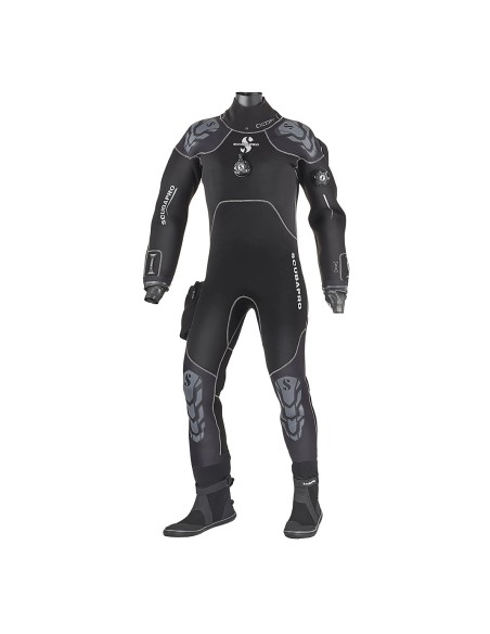 The premium-plus Exodry offers a unique approach to drysuit design by fusing 4mm high-density neoprene with latex wrist and neck seals. This hybrid design is extremely effective, delivering minimal inherent buoyancy, maximum range of motion and an excellent sealing system. This comfortable suit comes with protective shoulder and knee panels, a plush interior lining, blue-style suspenders and much more. The Exodry 4.0 comes with shoulder and knee panels, a plush interior lining, suspenders and a attached semi-rigid dive boot with fin strap retainer that includes a hook & loop strap that improves fit while preventing air from travelling to the boot when diving in the heads-down position. The Exodry is a smart choice for all types of diving and can be used with or without an undersuit.