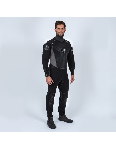 Designed with cold water adventures in mind, the Hydra Drysuit is made from High Density Neoprene compressed from 7mm to 4mm, providing warmth whilst maintaining freedom of movement. Fitted with high-end Apollo Bio-Dry Valves, YKK AQUASEAL® dry plastic zipper and the Hydpro Smooth Pro low pressure hose, the slimline cut of the suit means easier air management and all round supreme performance.
