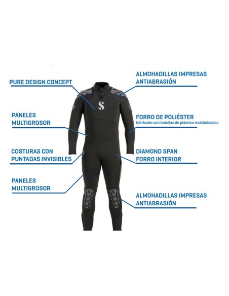 - Blue Diamond Span inner fleece lining’s warm and water-draining material enhances cold-water protection. It is combined with a second black lining for improved stretch, also making donning and doffing much easier.