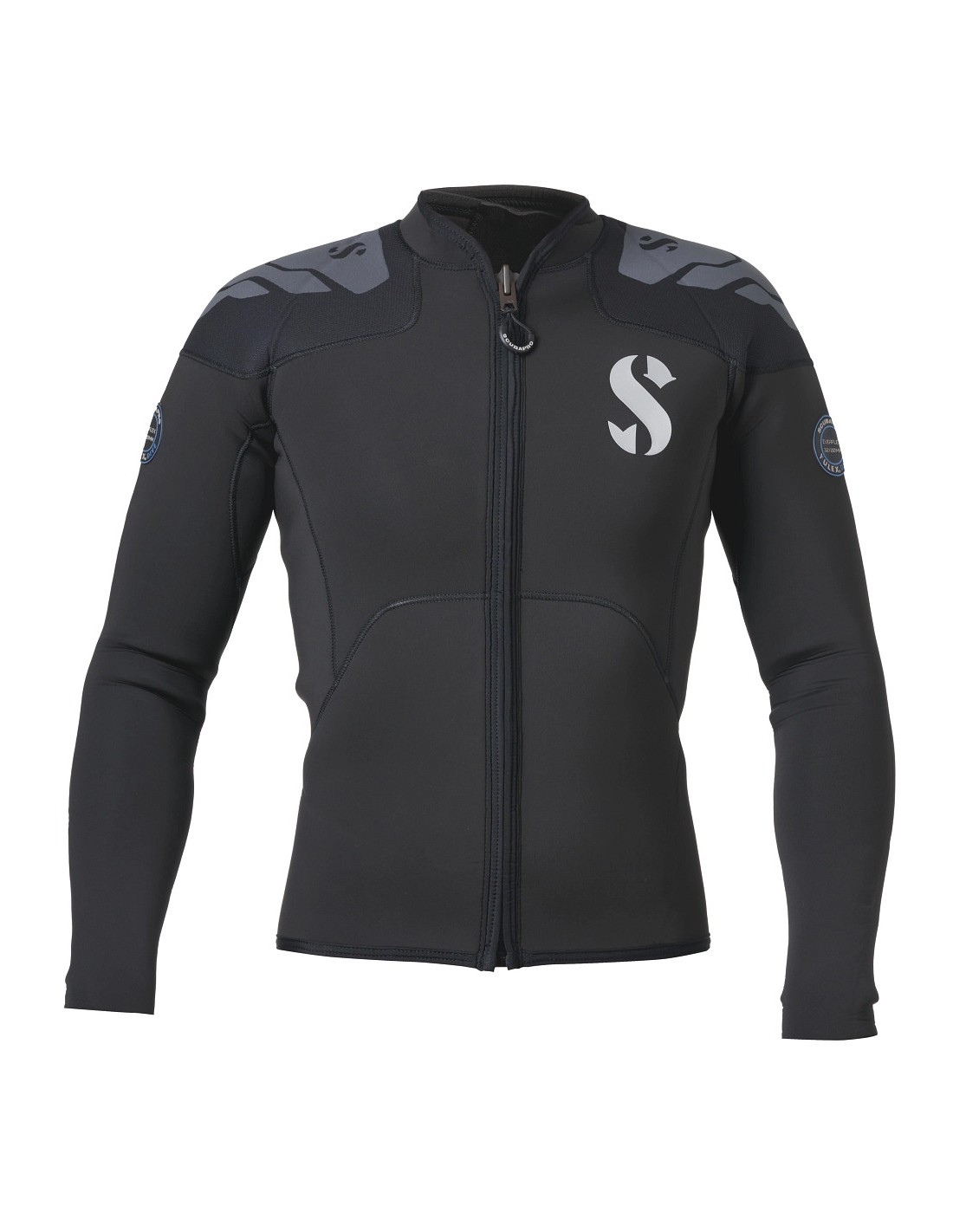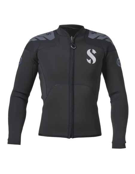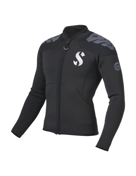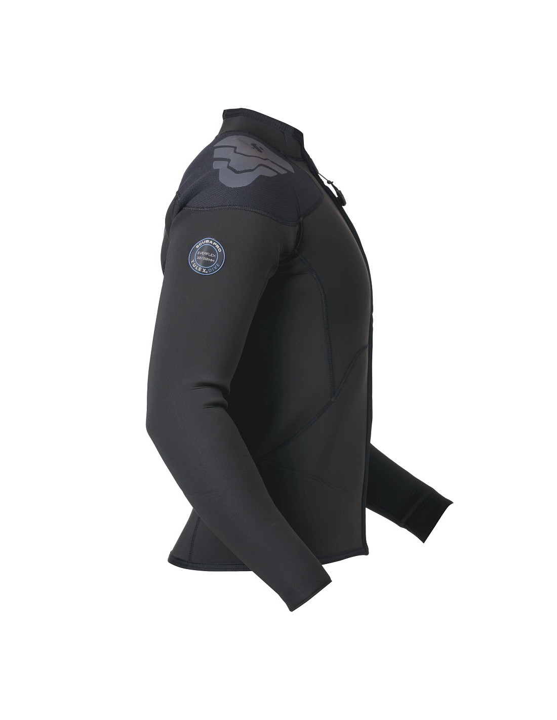 This 3mm long sleeve top can be paired with the 3mm pants as an alternative to the Everflex YULEX® 3/2mm steamer. Designed with the Pure Design Concept where fewer seams and panels are employed to maximise comfort and range of motion, the top features blind-stitched seams and comes with a black stretch polyester outside/inside lining. Super flexible, the top is fitted with a vertical front zipper and wrists feature fuse-cut finished cuffs that are super stretchy for easy donning. The top provides abrasion-resistant fabric with additional printed pads on the shoulders to prevent abrasion from BCDs.