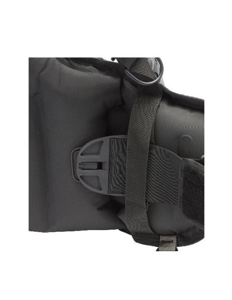 - The semi-rigid, soft and padded backplate allows you to fold and carry the B.C.D. in the smallest possible space, thanks also to a strap with Velcro in a special lower pocket, dedicated to instant packaging.
