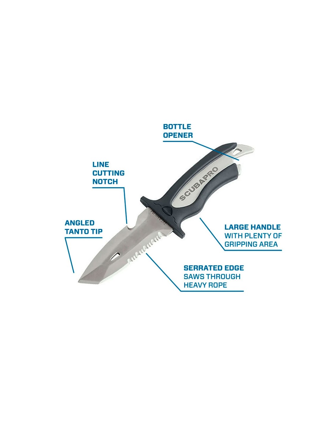Better to have a knife and not need it, than to need a knife and not have it. At the same time, you don't want to swim around with a Samurai sword strapped to your leg. This is where the MAKO STAINLESS excels. It is compact enough to easily strap to a leg or forearm or mount on a BCD, yet its large enough to hold onto with confidence when it's time to do some cutting. The MAKO’s multi-function blade has a serrated edge for sawing through rope, a conventional edge for making clean slicing cuts, a line-cutting notch, and a bottle opener. The Tanto tip, with its angled shape, is one of the strongest knife points available and, combined with the different blade edges, makes the MAKO STAINLESS an excellent general-purpose dive knife.