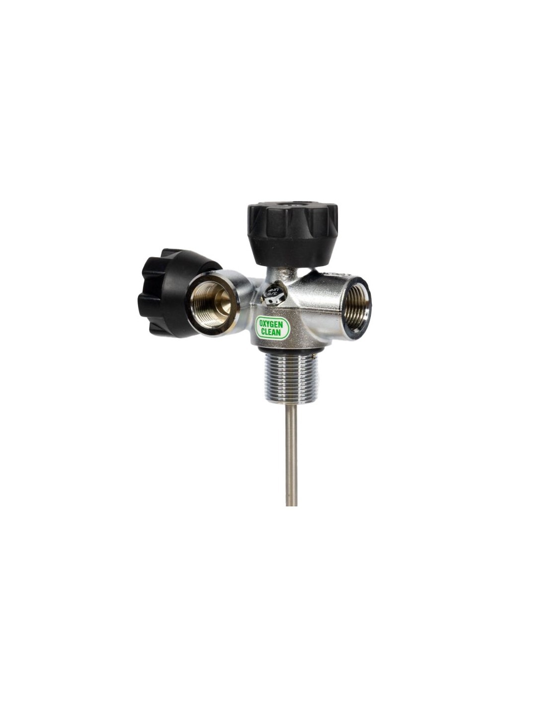 It has two outlets, each activated by its own shut-off valve, in this way double outlets can be mounted on single cylinders, twin sets, supports for SCR, PSCR, rebreathers in DIR and/or GUE configuration and specific supports for speleodiving.
