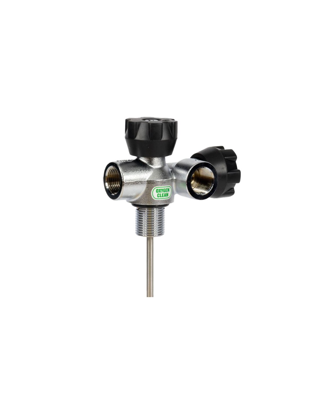 It has two outlets, each activated by its own shut-off valve, in this way double outlets can be mounted on single cylinders, twin sets, supports for SCR, PSCR, rebreathers in DIR and/or GUE configuration and specific supports for speleodiving.