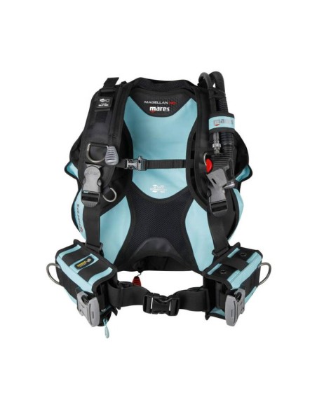The Mares Magellan HD scuba BCD blends comfort and functionality seamlessly. With a 180 N lift, its back buoyancy design ensures optimal control underwater. Featuring X-tra comfort cushioning, customizable weight pockets, knife grommets and integrated Trim Weight pockets, it offers enhanced practicality. The BCD also includes a roll-down pocket, Line Cutter sleeve, five stainless steel D-rings and comes in three colors: black, blue, and aqua. Choose reliability and versatility for your dives with the Mares Magellan HD scuba BCD.