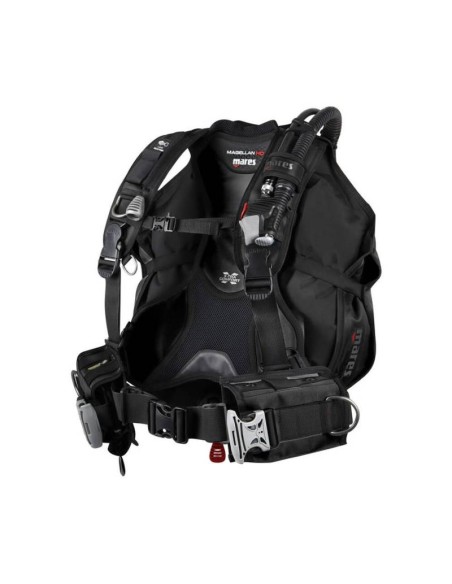 The Mares Magellan HD scuba BCD blends comfort and functionality seamlessly. With a 180 N lift, its back buoyancy design ensures optimal control underwater. Featuring X-tra comfort cushioning, customizable weight pockets, knife grommets and integrated Trim Weight pockets, it offers enhanced practicality. The BCD also includes a roll-down pocket, Line Cutter sleeve, five stainless steel D-rings and comes in three colors: black, blue, and aqua. Choose reliability and versatility for your dives with the Mares Magellan HD scuba BCD.