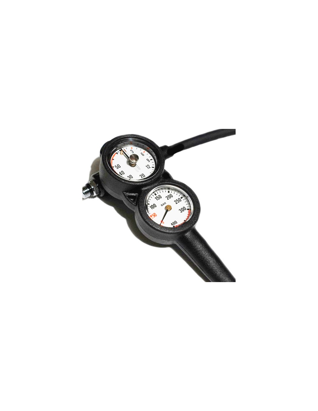Double console with pressure gauge and depth gauge.