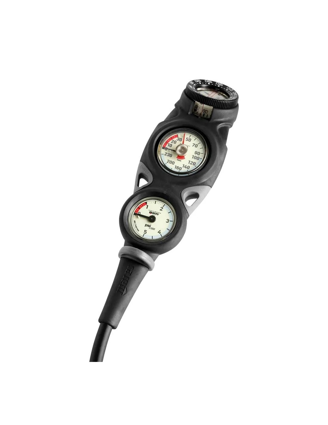 The compass is oil filled for a quick and responsive movement. Dual magnets give faster response and with a maximum working tilt angle of 20 Degree ensures accurate compass headings. A ratchet bezel with compass headings in 10 Degree indicator marks and 30 Degree numerical readings. Bezel has twin heading indicators for alignment of compass course, and a double lined lubber line across the compass face. A side window with compass degrees allows gun-sight accurate use when precise headings are required. Compass card is luminescent for low light conditions. The impact-resistant boot has multiple eyelets for attachment of clips or lanyards to keep the gauge close at hand and from dragging over the environment. All current in line Mares Instruments are compatible up to 40% Oxygen (EAN 40) right out of the box.