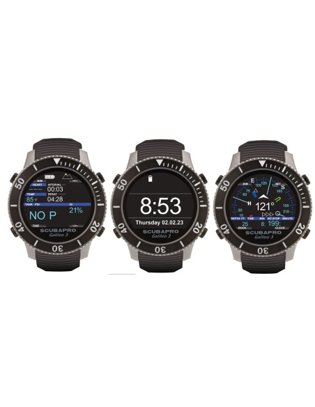 With a vibrant color display for easy readability, the SCUBAPRO Galileo 3 (G3) offers a modern watch-style dive computer in a classic timepiece look. Utilizing Galileo’s trusted menu design and four button control, it’s extremely intuitive to navigate through dive modes, two algorithm choices, screen styles and other personalized dive management options. Powered by a rechargeable lithium battery and built to last with a stainless steel housing, the G3 delivers everything you need in a dive computer with the comfort and style of an everyday wristwatch