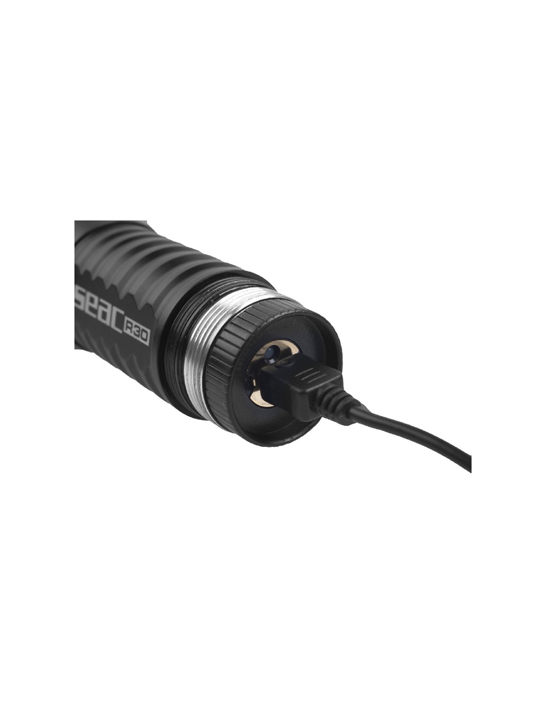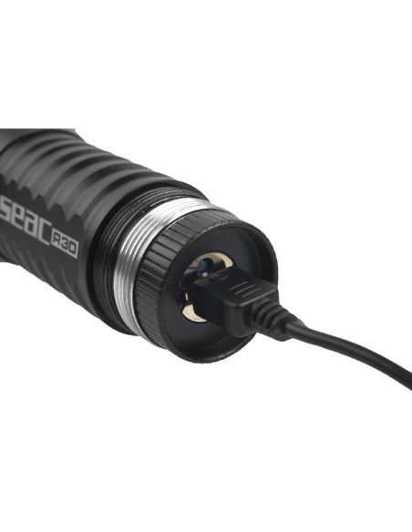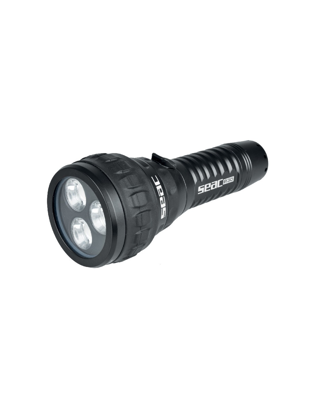Despite its weight of only 480 gr and its size (length 17 cm, diameter 6.6 cm), the Underwater torch Seac Sub R30 is a small but very powerful underwater accessory suitable for every diving environment. It does not create encumbrance in your luggage, it can be hooked to the BCD rings, carried in the BCD pocket or attached with the provided strap to the wrist. Thanks to the 3 LED 15 Watt light,it is able to generate an luminous output of 1500 lumens. The light color neutral white (7000 K) similar to sunlight returns the real colors of the underwater environment. The Internal Battery Li-Ion 5000 mAh is easily rechargeable with the cable Micro-USB supplied and it does not have to be pulled out from its case. It as an autonomy of 1 hour and 20 minutes at maximum power, ideal for travel and/or scuba cruises where it is more difficult to find disposable batteries. Equipped with 3 functions to adjust the light intensity. Through the switch the diver can choose full power (100%), reduced power (30%) or flashing mode. This feature eases the managing of the battery duration. Very a useful feature when planning repetitive dives. The light beam width can be adjusted by rotating the bezel, on a range that goes from 12° to 75°. It therefore allows the diver to adjust the projection of the beam as needed. The bezel can be easily turned even when wearing gloves, with cold hands and little sensitivity. Two innovative features have been introduced to prevent flooding , a magnetic switch with electrical pulses stored in a separate compartment and a 3 points radial seal gasket replacing the traditional o-rings. Seac Sub has once again realized a high quality product of Italian design, ergonomic, in aluminum alloy, optical tempered glass, resistant to shock and pressure. Maximum operating depth 100 mt/300 ft