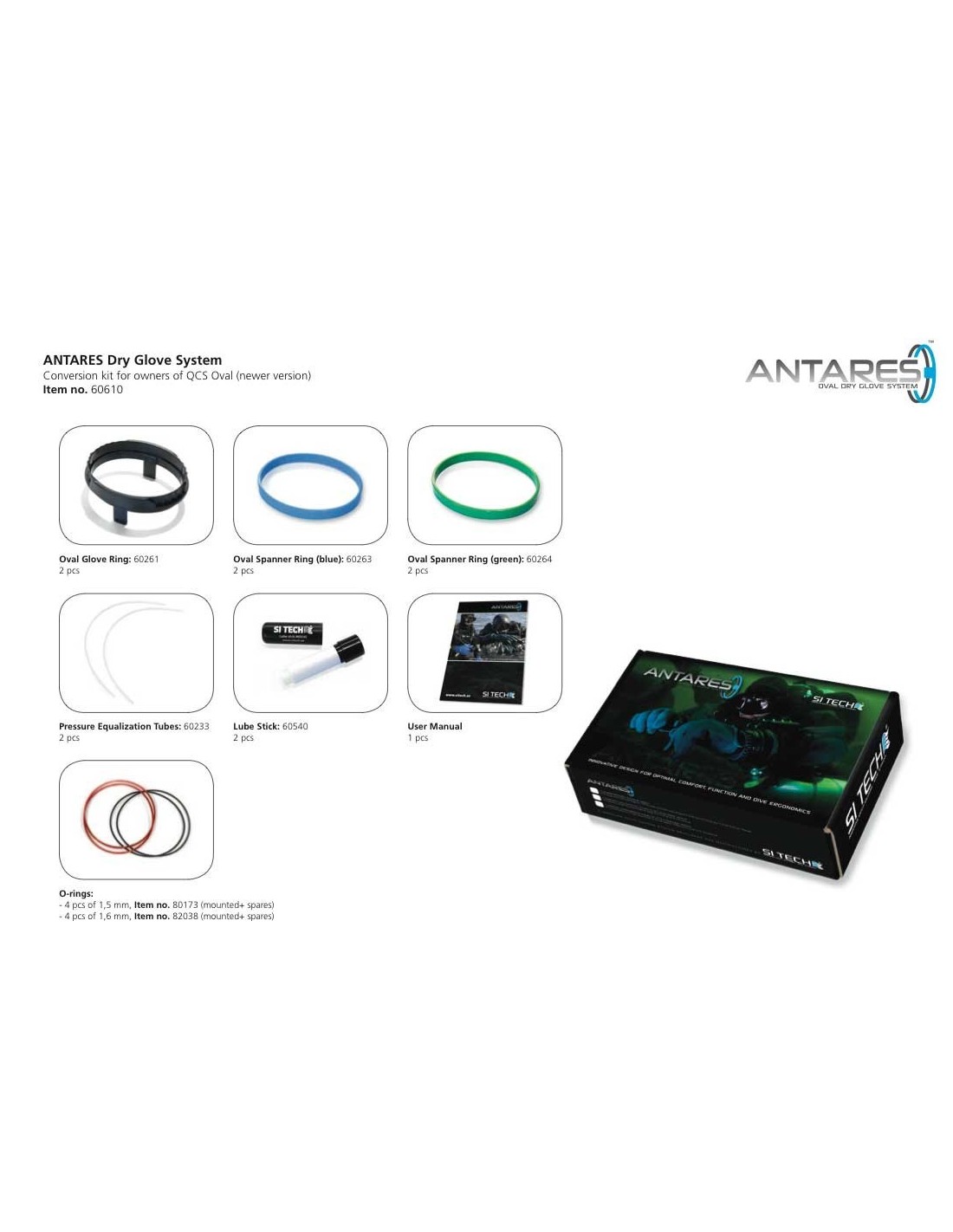 This set is for customers that already have the older type of QCS Oval; oval Stiff rings, oval Glove rings and oval Spanner rings. The includes all the items needed to update your previously installed QCS Oval (newer version) in your drysuit compatible with the new ANTARES Dry glove system.