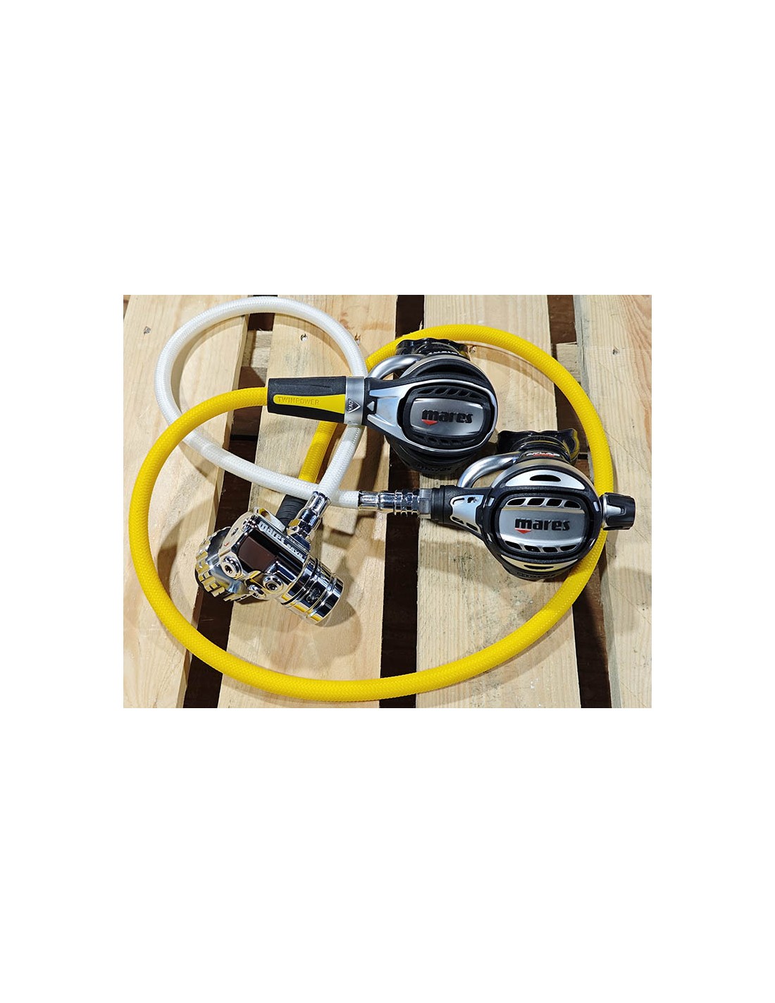 High performance set consisting of a Mares 26XR 1st stage, an ATLAS ADJ 2nd main stage and an Octopus Fusion, also with very high performance.