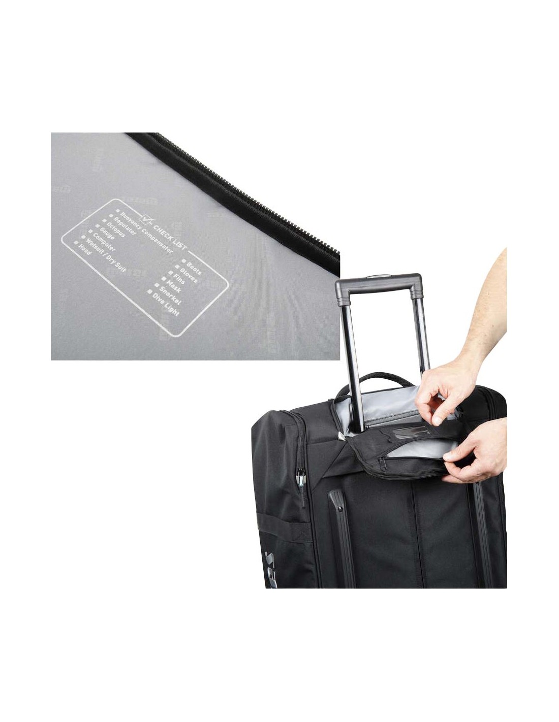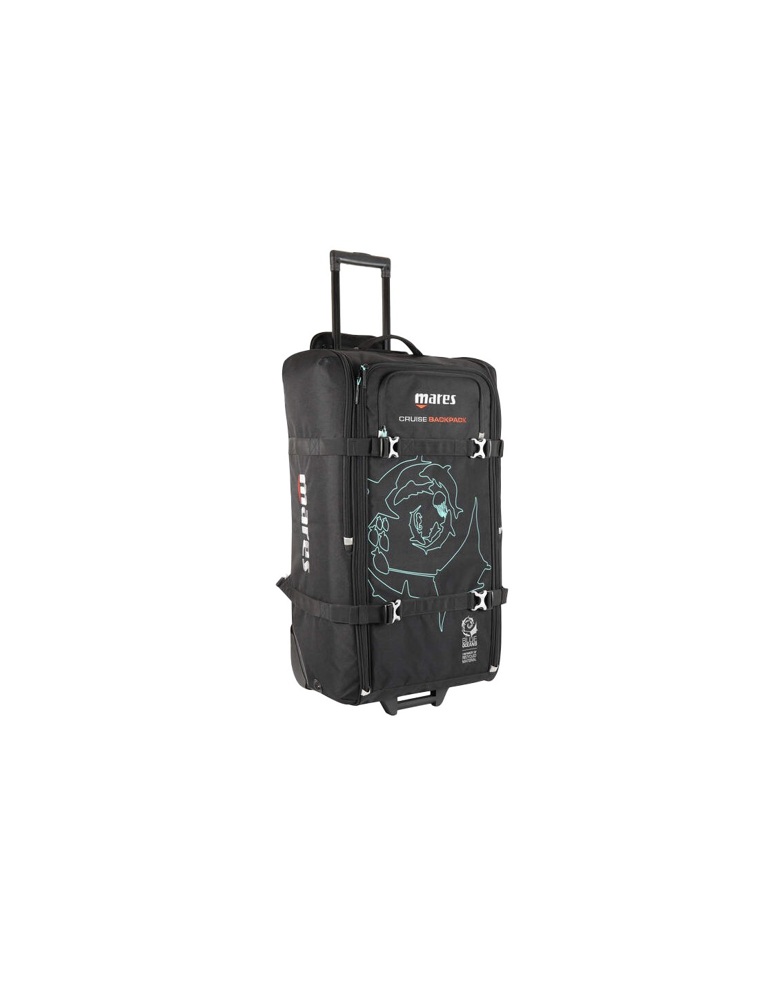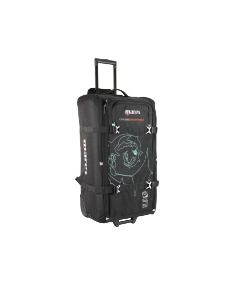 Optimize your dive travel with the Cruise Backpack, now eco-friendly in 100% r-PET. This 100-liter bag boasts a telescopic handle, large sturdy wheels and adjustable compression straps for compact storage. The interior features tie-down straps, an inspection zipper and ultralight buckles. Enjoy comfort with padded shoulder straps and the air mesh handle. The bag includes an external fin pocket with drainage, side handles and A.T.O. for hassle-free air travel.