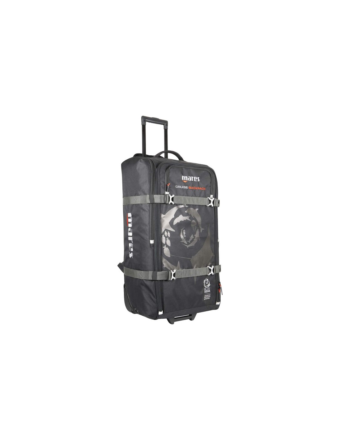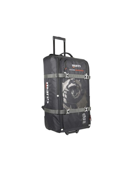 Revitalize your dive travel experience with the Cruise Backpack Roller, now eco-friendly in 100% r-PET. This 128-liter bag boasts an easy-folding design, allowing it to be stowed effortlessly. The large sturdy wheels ensure convenient mobility, while features like the adjustable, padded shoulder straps and air mesh handle provide comfort. Practical elements, including the external fin pocket, compression straps and internal zipper, enhance functionality. The bag's light weight and air travel optimization make it perfect for efficient air travel.