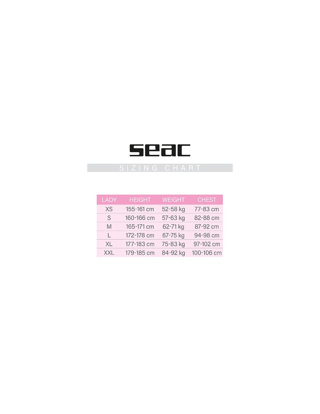 - Seac Alfa 5.0 Guarantees ease of movement and extreme comfort thanks to the super elastic anatomical inserts around the forearms, calves and armpits