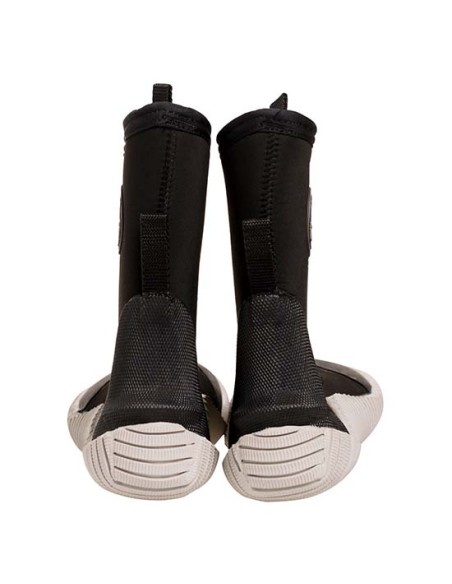 - Boot’s 5mm neoprene, laminated on the outside with super-stretch nylon, is so pliable that donning and doffing is easy without the need of a zipper.
