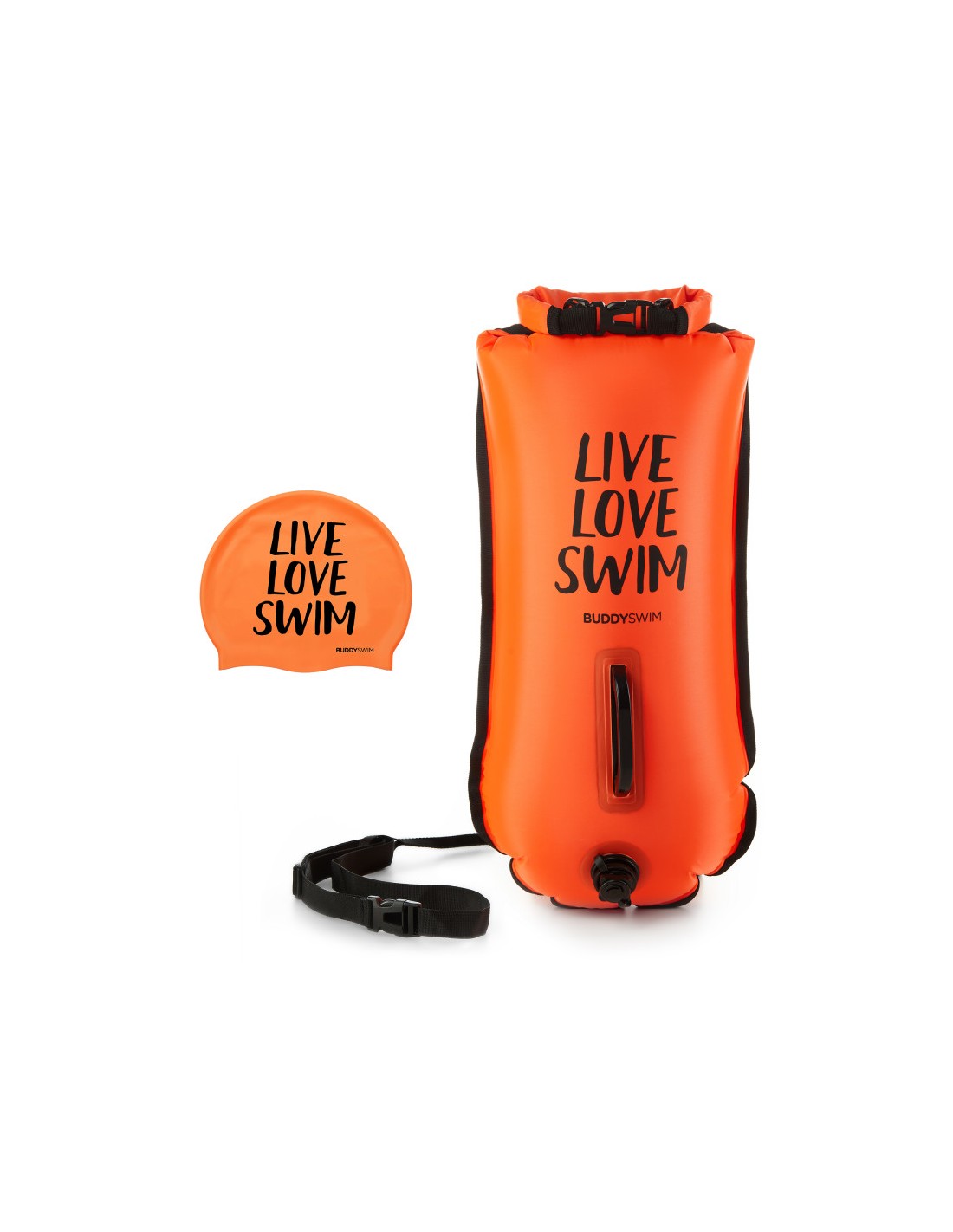 The BUDDYSWIM Drybag Buoy has two independent air chambers so that the buoy does not deflate completely in the event of a puncture or loss of air.