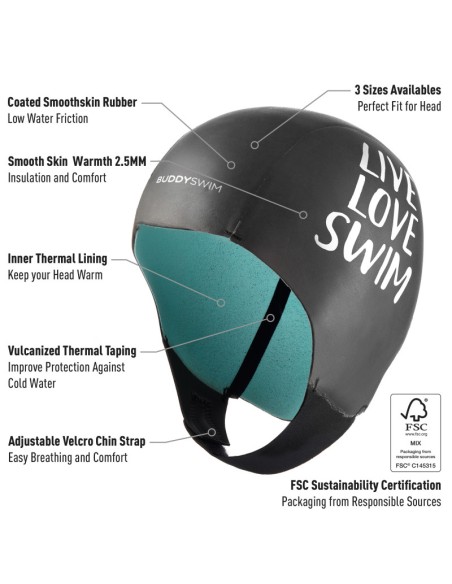 The Buddyswim neoprene swim cap is designed to keep your head warm during open water sessions. Made with 2mm Smoothskin, to offer optimal protection and flexibility.