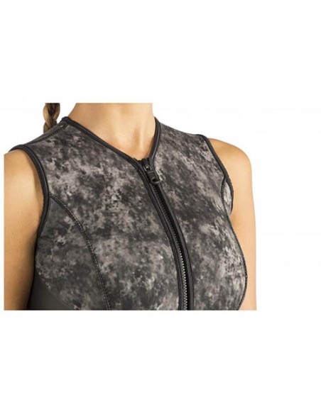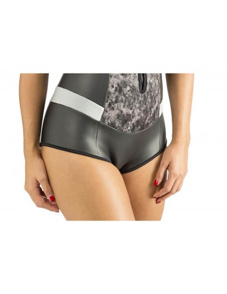 Made of 100% Ultraspan© superelastic, hydrodynamic interior-exterior fabric combined with smooth exterior neoprene areas. Interior laminated in 2 mm neoprene.