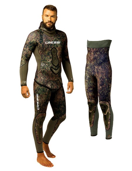 Both the hood and the sleeves come with smooth edges to generally increase the suit’s sealing. In addition, semi-flexible kneepads and a Tatex© sternal support have been added to increase protection in these sensitive areas. New mimetic design, patterned with the seabed through high resolution photography selected by Cressi’s competition team among multiple choices. Lightly distorted to combine the camouflage ability with an elegant aesthetic. Dark brown colors perfect for shadow areas of Mediterranean seabed and with posidonia as in oceanic seabeds. Medium density neoprene 100% with very flexible and hydrodynamic Ultraspan© lining to improve comfort, adaptation and quick dry.