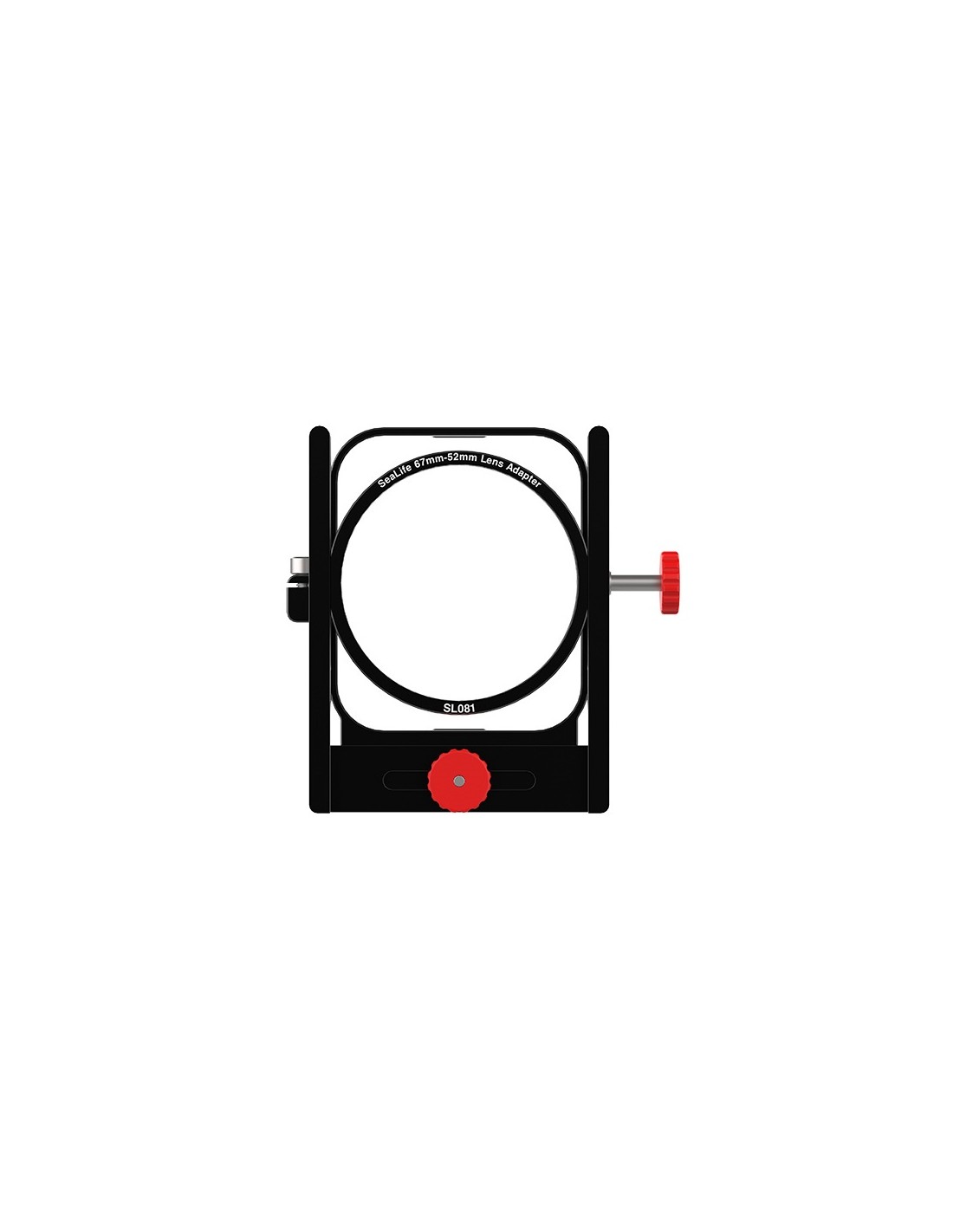 El adaptador de lente, fabricado en aluminio mecanizado anodizado duro y herrajes de acero inoxidable, se monta directamente en el puerto de lente del SportDiver para un ajuste seguro y firme. El adaptador permite ajustar fácilmente el movimiento horizontal y vertical de la lente para centrarla sobre el objetivo de grabación del teléfono. El adaptador viene con una rosca de 67 mm para lentes de mayor diámetro. Se incluye un anillo roscado de 52 mm para conectar lentes más pequeñas de 52 mm. Para otros lentes, se puede encontrar un anillo elevador o reductor en tiendas de buceo o fotografía.
