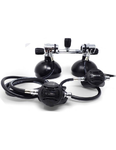 El conjunto TEK3 incluye: una primera etapa TEK3 izquierda, una primera etapa TEK3 derecha, dos segundas etapas XTX50, un latiguillo de 2 metros, un latiguillo estándar y un collar de regulador.