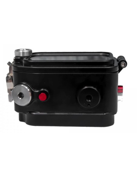 Carcasa submarina de aluminio anodizado (50 μm), diseñada para alojar las Insta360 Ace Pro y Ace Pro 2. Ofrece resistencia profesional hasta 250 m de profundidad, con doble junta tórica, inserto de zinc anticorrosión, bisagra lateral fácil de manejar incluso con guantes, ventana frontal ampliada para una visión más cómoda y múltiples puntos de montaje para pletinas, brazos y focos.