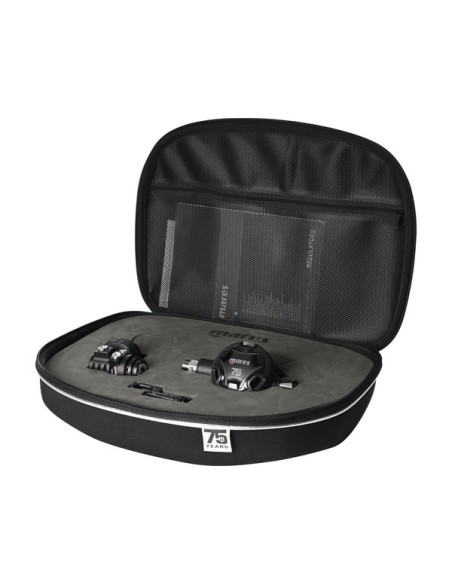 Celebre el 75v Aniversario de Mares y su continua innovación y desarrollo a lo largo de este tiempo con el exclusivo regulador DUAL ADJ 62X Special Edition. Con un elegante diseño del 75.º aniversario, un rendimiento respiratorio incomparable y un embalaje de primera calidad, este regulador de edición limitada es un artículo de colección. El duradero revestimiento "Black Intense" y los accesorios exclusivos lo convierten en la combinación perfecta de elegancia y funcionalidad para los buceadores mas apasionados de la marca y del buce en general