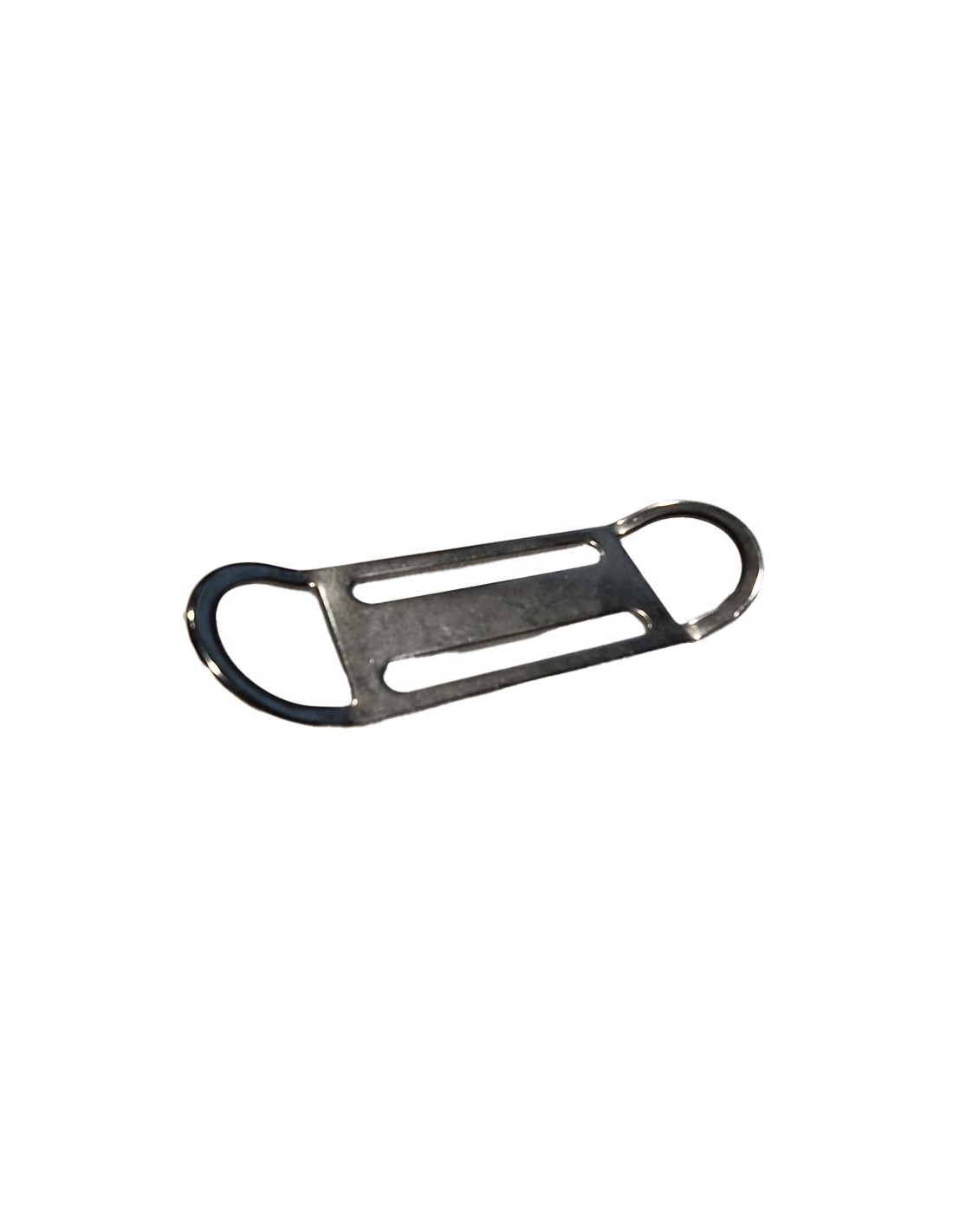Retenedor de acero inox para cincha de 5cm con anillas a ambos lados.