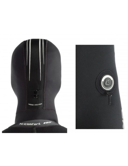 Estanqueidades en cuello y muñecas en neopreno ultraelástico, con forro Ultraspan, de 5 mm (muñecas) y 3 mm (cuello) fácilmente sustituibles en caso de deterioro.