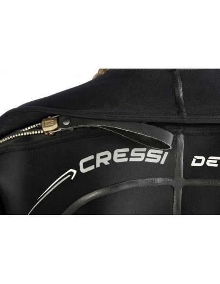 Cremallera BDM© 8 pitch en latón marino garantiza una gran fiabilidad sin perjudicar excesivamente la elasticidad del traje en la zona dorsal. Se ha sobredimensionado el acceso al traje para facilitar la colocación y la cremallera está protegida con una solapa exterior para evitar desgarros y el efecto de la abrasión.