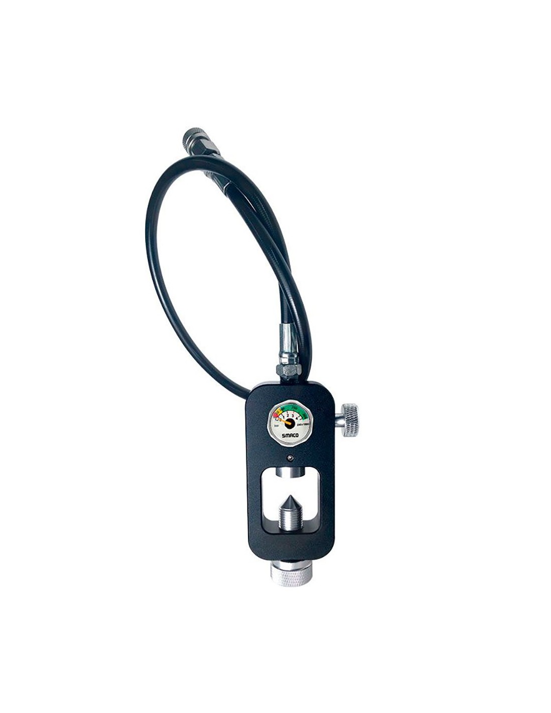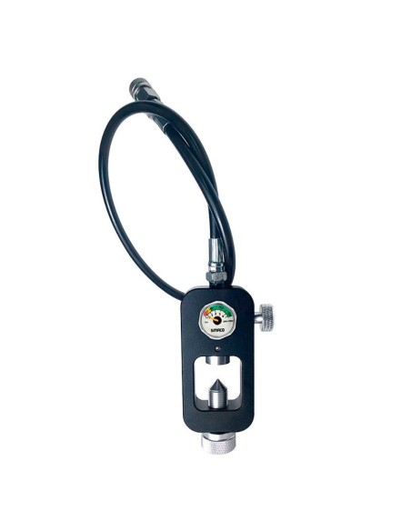 Latiguillo de carga para botellas Smaco con conexión INT y manómetro. Conexiones específicas para los sistemas Smaco