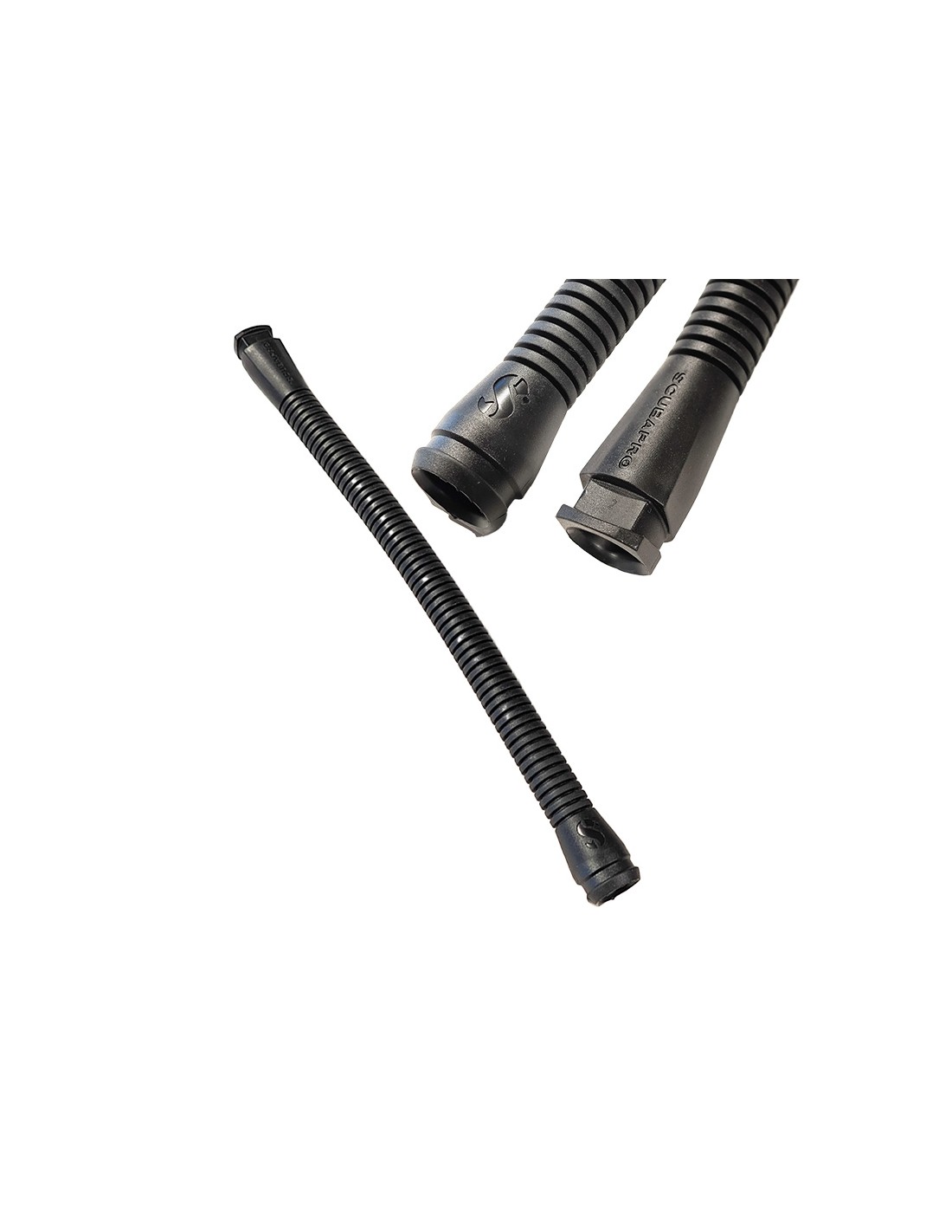 Tráquea corrugada para Jackets y/o alas con los terminales sobre dimensionados, en la parte alta para adaptarse al codo y dar cabida a una brida reutilizable ancha y en la parte baja para aportarnos mas grip y también dar cabida a una brida reutilizable ancha.