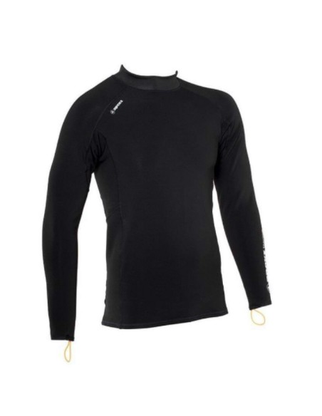 El tejido protector de triple capa que garantiza que te mantengas caliente en cualquier ambiente. El Thermiq Carbon Core se puede llevar solo, como un rashguard térmico en aguas templadas, o como capa extra debajo del traje seco o húmedo. Su avanzado forro está hecho de fibras revestidas de grafeno, que actúa como un superconductor, regulando la temperatura de la piel mediante la transferencia de calor de partes cálidas del cuerpo a partes frías. Su tejido transpirable previene la acumulación de humedad cuando se utiliza debajo del traje seco. Los enganches elásticos del pulgar lo mantienen en su sitio cuando lo llevas debajo del traje seco.