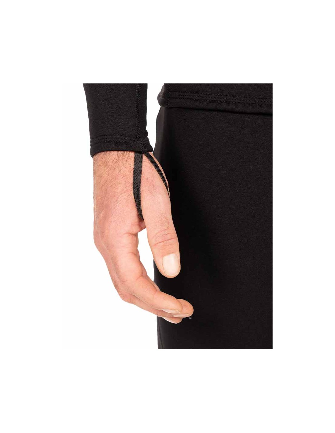 Cuenta con costuras planas para una mayor comodidad y se presenta muy largo para evitar la posibilidad que se separe de los leggings. Ideal para capa directa al cuerpo. Dispone de tiras de goma en las mangas para pasar los pulgares y colocarse el traje sin que las mangas de la prenda se nos vayan hacia arriba.
