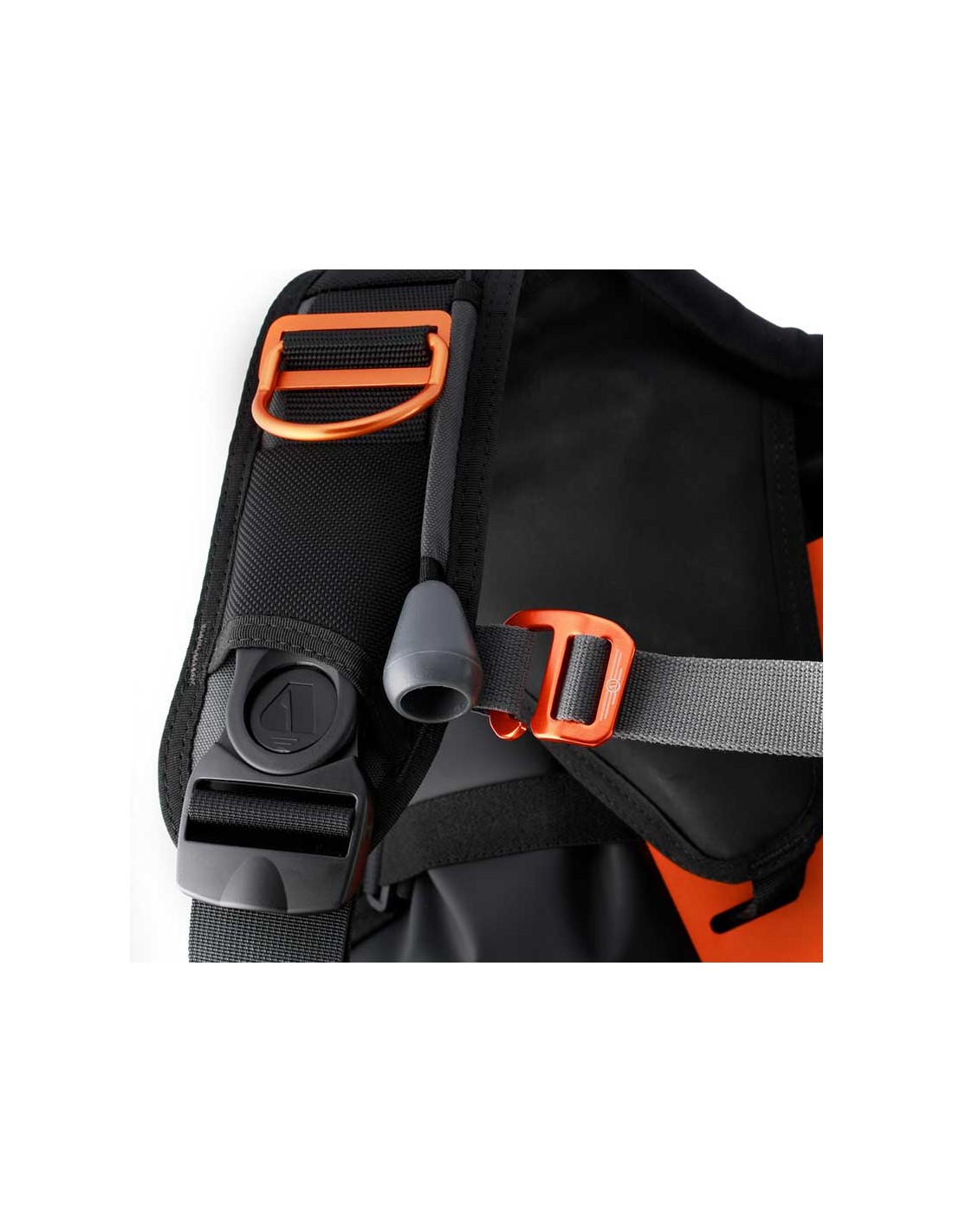 - Sistema de arnés Wrapture: utilizando hebillas rotatorias en hombros y una placa dorsal ultra fina patentada, el Wrapture proporciona un confort y una estabilidad si igual. El Wrapture evita que el chaleco se «suba» en la superfi cie. Fuera del agua, el Wrapture mantiene la botella cerca de tu centro de gravitación y transfiere el peso a tus caderas. El resultado es poder estar erguido con una botella perfectamente vertical.