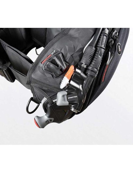 - La tecnología Ergotrim permite al buzo ajustar la flotabilidad sin importar la posición de buceo