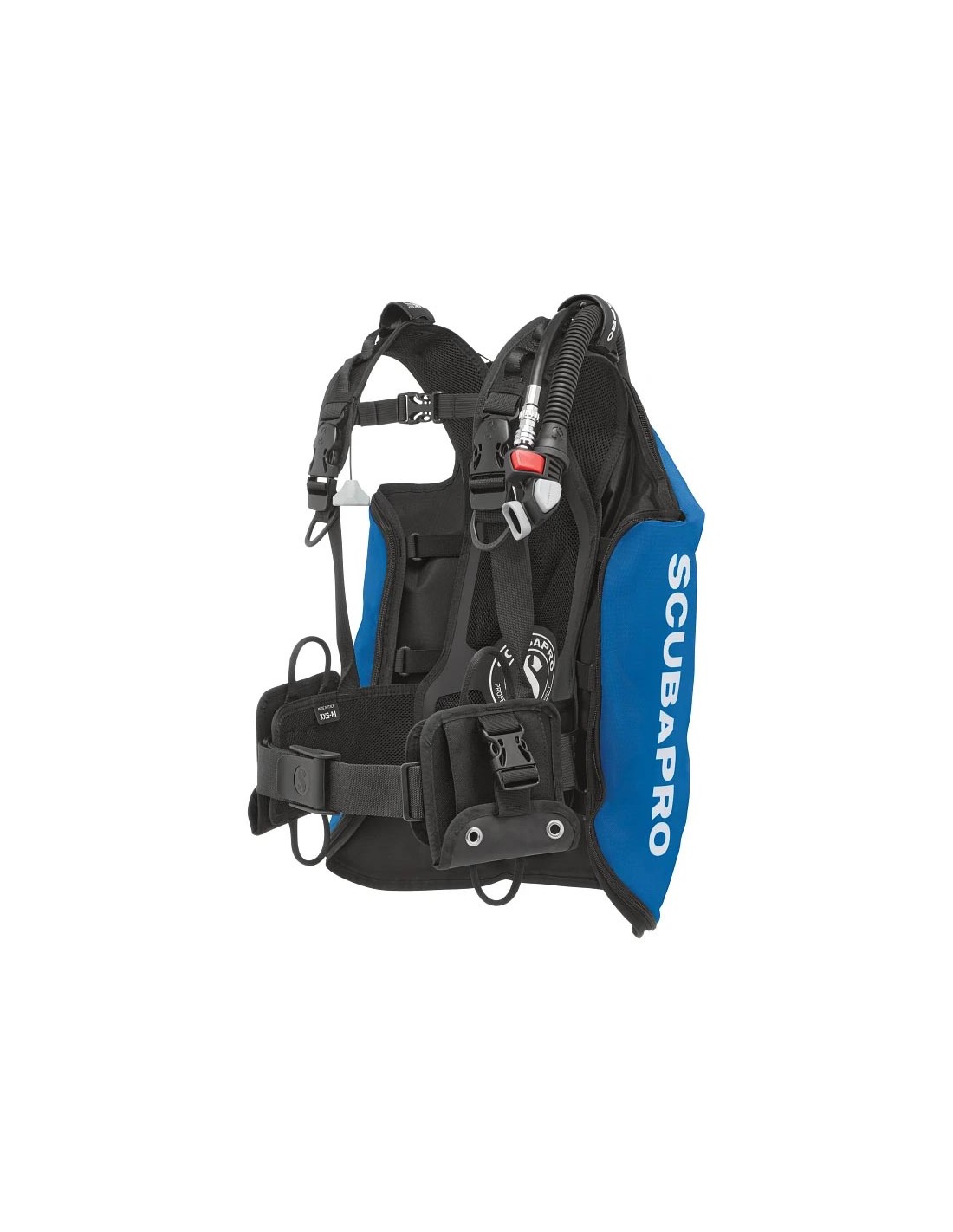 - El cinturón ventral cuenta con dos bolsillos desprendibles, cada uno con dos anillas en D blandas. Cada bolsillo tiene capacidad para hasta 2,5 kg de SCUBAPRO Ecoweight. Los bolsillos pueden colocarse con la abertura hacia arriba (para llevar accesorios) o hacia abajo (para configurar un sistema de lastre de zafado rápido).